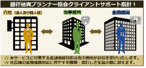 | ▶ 弊所が貴社の財務部長として金融機関対応の窓口(積極的な説明補助)になります。対応の煩わしさから解放されます。 |