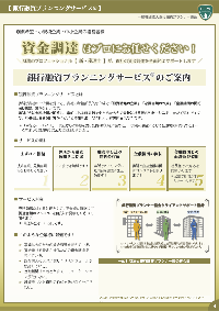 | サービス料金: | (役務提供に対する対価として成功時に)調達金額の2~3%程度 最低料金は10万円 |
